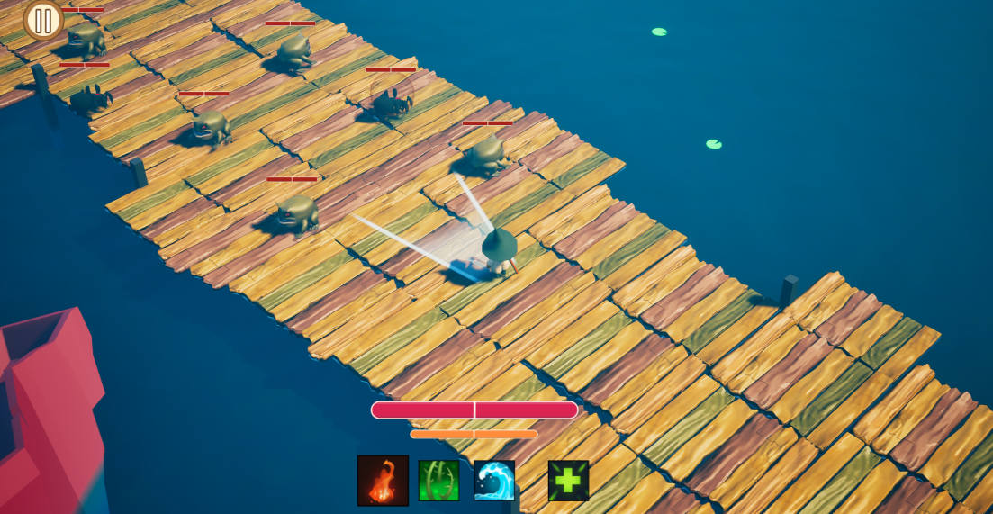 Elemental Quest is a 3D action-adventure game where you play as Nerlim, a young mage mastering the elements of Fire, Grass, and Water. Princess Lyra has been captured; you must journey through the ruined castle of Lord Eclipse, a fallen sorcerer who once tried to fuse Light and Dark magic. His castle gate is locked, needing the souls of 3 mighty heroes that have fallen into his castle grounds while trying to fight Lord Eclipse during a war. Explore overgrown courtyards, flooded docks, and molten forges, using elemental powers to defeat monsters and solve environmental puzzles.